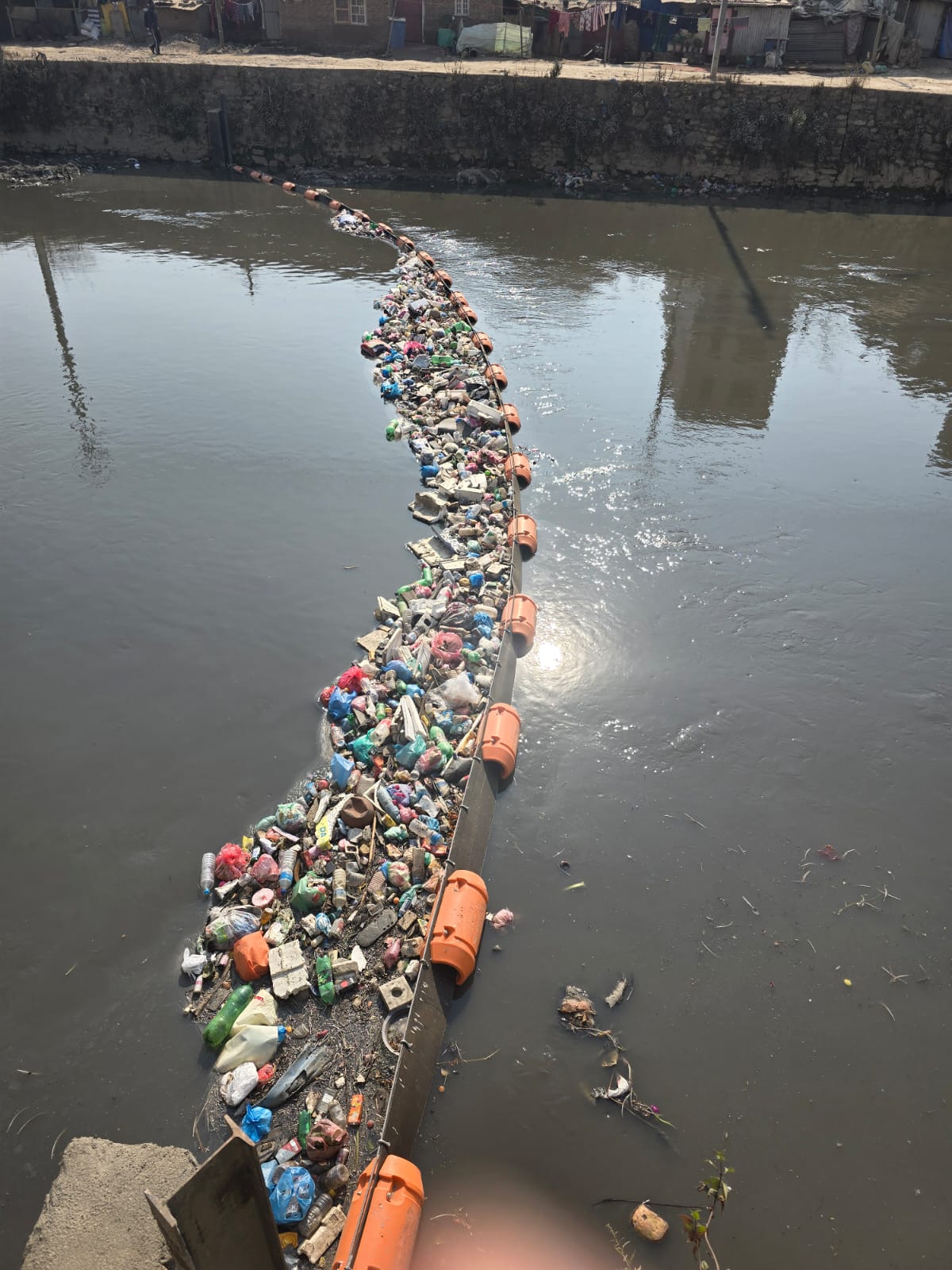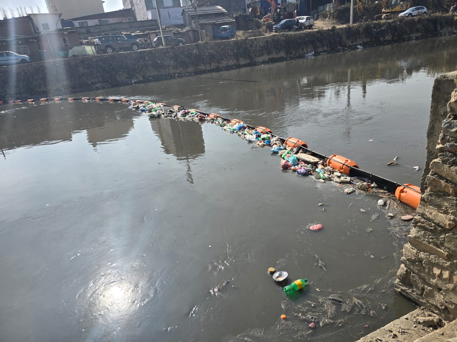 मनोहरा खोलाको बालकुमारी पुलमा राखिएको Trash Barrier बाट संकलन भएको suspended waste को अवस्था, नदी सरसफाई कार्यका लागी विभिन्न ६ स्थानमा राखिएको Trash Barrier बाट खोला सरसफाई कार्य सहज हुँदै ।